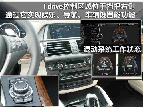 在內(nèi)飾部分寶馬X6混合動(dòng)力版車(chē)型也有著細(xì)微的不同,儀表臺(tái)的整體感覺(jué)與寶馬家族的其它車(chē)型造型統(tǒng)一,略向駕駛員一側(cè)偏轉(zhuǎn)的儀表臺(tái)照顧到了駕駛員在駕車(chē)當(dāng)中的操作便捷性。儀表臺(tái)整體材料為真皮材質(zhì),而鋁金屬裝飾條顯得更加動(dòng)感十足,但第一感覺(jué)始終讓人誤以為是寶馬X5的內(nèi)飾。