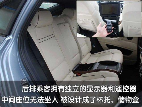 寶馬X6的后排空間被杯架與中央扶手分隔成左右兩個獨立的座椅,并與行李箱明確地分隔開來。其后排座椅后面的行李箱容積有570升,遠(yuǎn)大于一般的跑車。寶馬X6全能轎跑車的行李箱還配備了一種折疊硬蓋,平時很實用地收藏在地板下面,以方便載運大體量物品。而當(dāng)4/6比例后座靠背放倒時,后備箱容積將擴(kuò)至1450升。