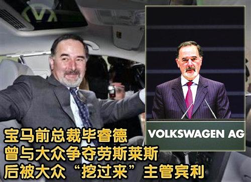 1998年6月,寶馬公司在爭購勞斯萊斯汽車公司的投標中敗給了大眾公司。7月28日,寶馬公司花4000萬英鎊購買了勞斯萊斯的商標和標志,并與大眾簽署了一項協議,約定寶馬從2003年起開始生產勞斯萊斯牌轎車,而大眾則從2003年起仍舊在克魯廠房生產賓利豪華轎車。這樣賓利就正式收歸大眾旗下,這其中有個戲劇性的小插曲:曾經是寶馬總裁畢睿德在任時曾經與大眾爭奪勞斯萊斯,后來因為種種原因被大眾挖走,主管賓利!