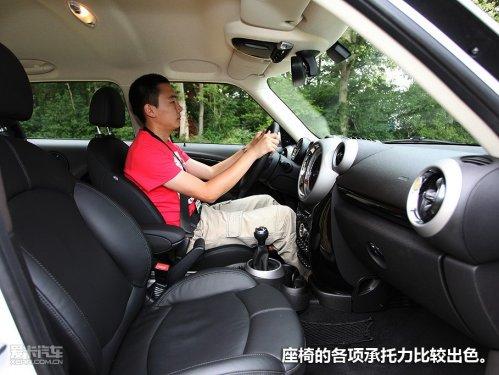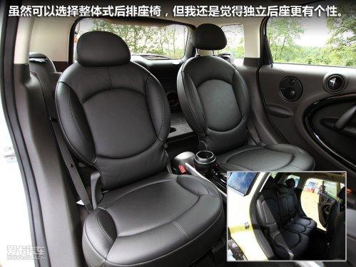 MINICountryman的前后座椅均采用手動調節,無論前排還是后排,座椅的高度都有所增加,雖然調節范圍夠大,但也沒有MINI Cooper那“貼地”的駕駛感受。這樣做的好處是顯而易見的,MINICountryman的車內視野非常好,座椅的各項承托力也比較出色,所以駕駛員更多收獲的是輕松自在的感受。
