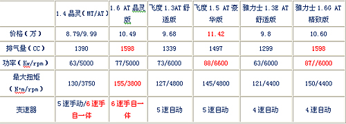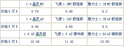 上表列出了晶靈版晶銳、飛度和雅力士三款車型的售價(jià),從中我們可以發(fā)現(xiàn):首先,在手動車型方面,晶靈版1.4MT車型的售價(jià)僅為8.79萬,比雅力士和飛度都要低;其次,晶靈版晶銳1.4AT在價(jià)格上看似要比競品的1.3L AT車型稍高,但考慮到晶銳采用的是Tiptronic6擋手自一體變速箱,而飛度和雅力士都是四檔自動,落后不止一點(diǎn),加上晶銳的配置要豐富很多,這點(diǎn)在后文會有詳細(xì)介紹,綜合來看晶銳1.4AT晶靈版的性價(jià)比優(yōu)勢還是相當(dāng)突出的。另外,晶銳1.6L AT晶靈版,無論是品質(zhì)上,還是配置上都擁有同級競品車型所無可比擬的優(yōu)勢,而其價(jià)格卻要大大低于這些競品。
