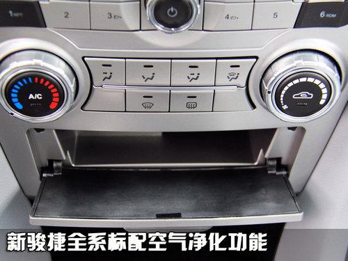 2011款駿捷的車頭燈配備了透鏡,極具沖擊力的車頭是我們記住2011款新駿捷的主要特點,夸張的霧燈設計與大燈的造型上下呼應,大量鍍鉻裝飾條的加入也讓新駿捷更顯高檔和霸氣。2011款駿捷的中網與老款也有明顯的區別,豎置鍍鉻裝飾條已經不再出現,取而代之的是全黑中網配以啞光銀色裝飾框。