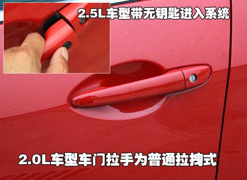 與車身同色的車外門把手開啟車門時力度適中,周圍與車門板金接縫均勻,開啟的過程中無松垮的感覺。不過這款車并沒有采用智能鑰匙系統(tǒng),消費者要進入愛車只能通過鑰匙開啟車門。