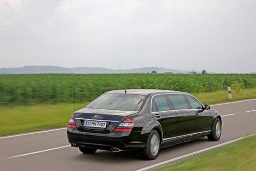 S600 Pullman Guard防彈車看上去長得有些夸張,事實上超過6.3米的車身長度比目前的長軸版勞斯萊斯幻影還要長,4.3米的軸距已經是一款中級轎車的整車長度。經過全方位裝甲防護的它重達5.3噸,比兩臺奔馳S600L加在一起還要重。巨大的重量全部落在了四條直徑27.6英寸的米其林PAX防爆胎上,為S 600 Pullman Guard提供動力的是5.5升V12雙渦輪增壓發動機,雖然最大功率達到517馬力,但受到體重的局限,官方公布的最高時速僅為160公里/小時。