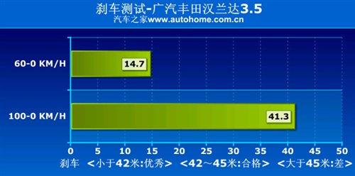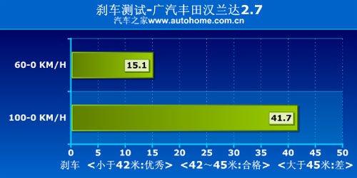在我們的實際測試中,漢蘭達的剎車成績表現還是不錯的,除了自身的剎車系統比較優秀外,四條245mm寬度的輪胎的作用也功不可沒。