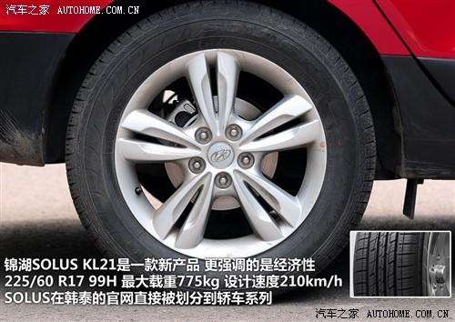 ix35最低配新銳版2.0GL的自動擋和手動擋兩款車型采用的是215/70 R16的輪胎,這并不是它的主推車型,而其余車型的輪轂尺寸和輪胎寬度都要大一號為225/60 R17。ix35采用的韓泰SOLUS KL21輪胎為上市不久的新產品,是韓泰專門為城市SUV開發的,有意降低了滾動阻力和摩擦噪音,突出經濟性和乘坐感受,而對于越野能力卻沒有提及。在性能測試中,ix35的剎車能力表現不錯,與輪胎較好的抓地力也是分不開的。