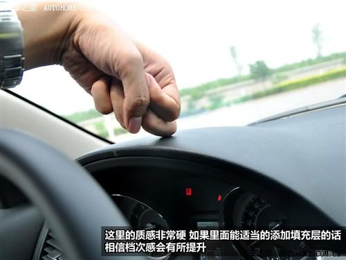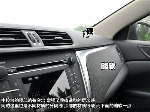 但我們并不太喜歡中控臺的覆蓋材質,尤其是中控臺頂部,由于缺少填充物這里完全是硬梆梆的。沒有親和力的手感讓人覺得不夠顯檔次。而金屬裝飾之下的部分雖然里面有填充層,但摸上去只比頂部略軟一點,依然談不上觸感細膩。