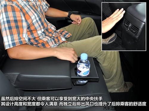 如果不在乎腳部的感受,坐在后排中間的乘客還算是比較舒適的,這主要是因?yàn)檫@里的座椅要更加柔軟而且也帶有頭枕。不過讓傳動(dòng)軸留給余地為設(shè)計(jì)的鼓包使后排地板突起明顯,因此中間乘客很難找到合適放腳的地方。