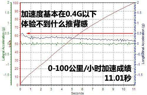 有了前面的駕駛感受,我們也就對鈴木凱澤西的加速能力有了大概的預期。還記得凱澤西在廣告中宣稱0-100公里/小時加速7.8秒,這個成績確實很吸引人,但不要忘了那是6擋手動版車型,不僅整備質量輕了100來公斤,輪胎也要窄20毫米。所以這輛2.4+CVT版跑出11.01秒的成績一點也不奇怪。