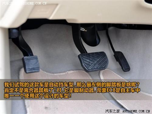 另外,在這款車上我還見到自主品牌中少有的腳制動剎車,這樣的設計多見于合資品牌,而自主品牌中帝豪EC8可能是首家采用這樣設計的。