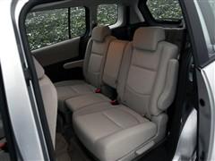 將第二排座椅向前滑動則可進入第三排,第三排座椅相對簡單,在造型上沒有前面那么講究,靠背和坐墊比較平直,雖然軸距較短,但是較高的車頂和高挑的車頂弧線會帶來相對充裕的頭部空間,調整好坐姿對于腿部是一個彌補。