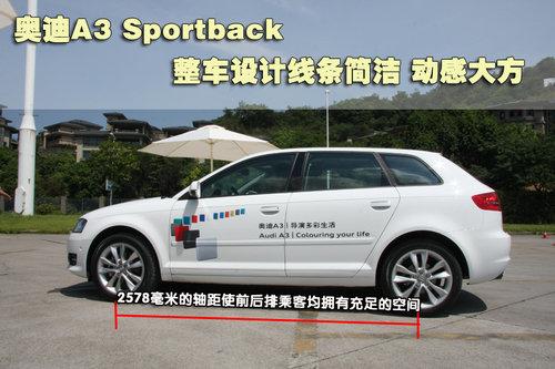 奧迪A3 Sportback車身尺寸長4,292毫米,寬1,765毫米,高1,423毫米(滿載狀態下),前懸881毫米,后懸833毫米,整車比例協調舒展,2,578毫米的軸距更使前后排乘客均擁有充足的空間。