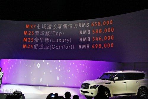 官方指導價:英菲尼迪QX56 149.8萬元;英菲尼迪M25 49.8-58.8萬元;M37 65.8萬元