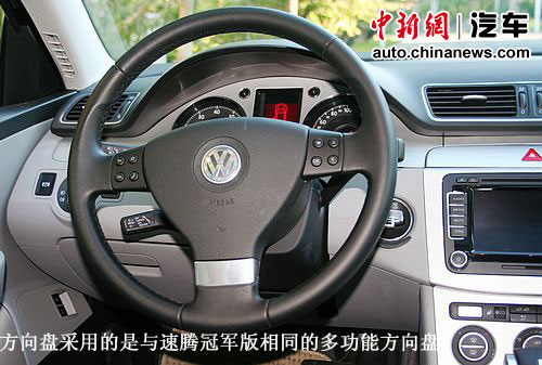 方向盤還是沿用了大眾的三幅方向盤,外圈以真皮包裹手感還算過得去,方向盤兩側帶有多功能按鍵,可較為方便的對音響系統等進行控制,但由于按鈕較小使用起來并不是很舒服,不過也許在用慣了的情況下還算好用。