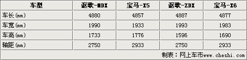 另一方面,我們都知道謳歌MDX與寶馬X5屬于同級(jí)別的豪華SUV車型,寶馬X6又是X5的跨界版車型,由此我們可以判斷謳歌ZDX的競爭對(duì)手將是寶馬X6。從上表數(shù)據(jù)我們可以看出謳歌ZDX車身尺寸要大于寶馬X6,軸距方面則是X6略顯優(yōu)勢,將近3米的軸距確保了其內(nèi)部空間的寬敞。