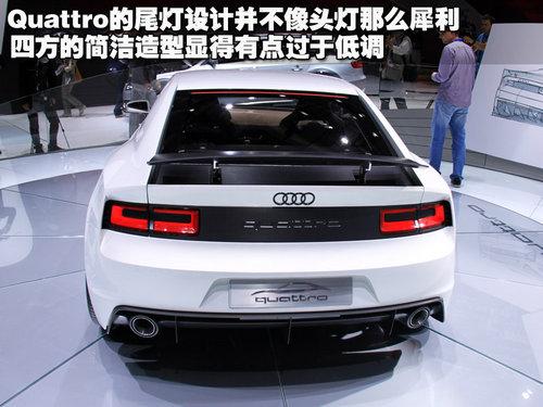 由于采用了掀背式設計,奧迪Quattro概念車尾部線條十分緊湊。與車頭的線條設計完全不同,渾厚敦實的的造型給人很強烈的安全感。