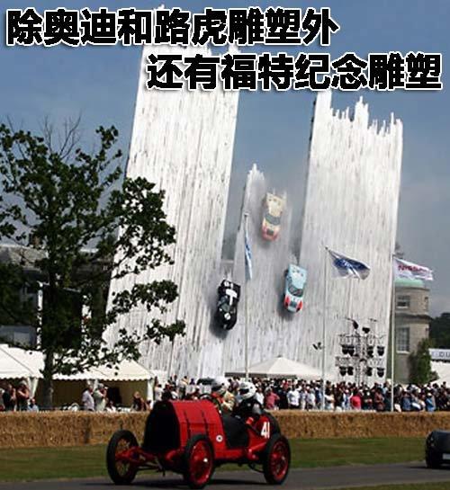 在奧迪百年慶典時,Gerry Judah就為奧迪量身打造了紀念雕塑。奧迪百年慶典雕塑座重達40多噸,高35米,采用鋼結構雕塑,展示了兩輛汽車直沖云霄的場景,祝福奧迪公司能在下一個百年更上一層樓。雕塑上的兩輛汽車分別為1937年經典流線賽車和R8 V10引擎運動跑車。設計師稱,這項雕塑體現了奧迪汽車的運動精神、業界威信和開拓勢頭。它將是今年英格蘭古德伍德速度節上的一大亮點。