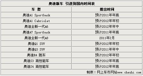為了使中國的客戶每個人都能擁有展現自身獨特魅力與品位的車型,奧迪將在未來的三年內向中國至少引進10款全新的車型。除了我們所熟悉的A6、A8等車型之外,全新的A7轎跑車與Q系列的入門級Q1、Q3、R4與S型高性能車型均將陸續進入國內。同時,高效環保的混合動力車型也將于國內消費者見面。