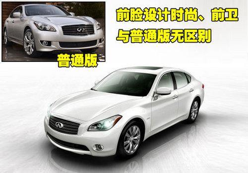 英菲尼迪M35的定位為豪華商務轎車,因此這款車型明顯比G系要穩重很多。混合動力版車型的外觀設計與普通版M35沒有區別,前臉設計延續了英菲尼迪家族特征,大面積的鍍鉻進氣格柵再配合一體式氙氣大燈使這款車更加具有侵略性。
