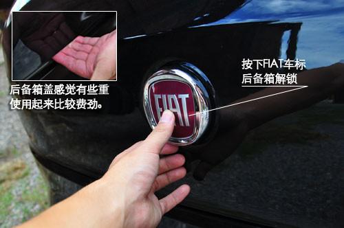 后備箱開啟采用了電磁感應按鈕,稍用力按壓FIAT標志即可開啟一個角度,設計頗為精巧。后備箱的容積并不算大,擱下一個旅行背包已經占據了1/3的體積,后排座椅支持4比6放到,雖然不能完全放平,但是也為后備箱提供了更多空間?傊,博悅的后備箱應付日常使用是完全沒有問題的。只是后備箱蓋感覺有些重使用起來稍稍有些費勁。