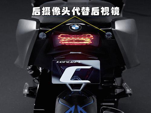 從正面看你可能會(huì)把Concept C誤認(rèn)為一輛街道摩托跑車(chē),而實(shí)際上這是由于它借鑒了寶馬重型摩托車(chē)的諸多設(shè)計(jì)風(fēng)格。車(chē)頭采用LED大燈,這頗有點(diǎn)汽車(chē)的風(fēng)范。摩托車(chē)儀表盤(pán)被一塊大的液晶屏取代,上面可以實(shí)時(shí)顯示各種系統(tǒng)信息。如果您眼神夠犀利的話會(huì)發(fā)現(xiàn)這是一臺(tái)沒(méi)有后視鏡的摩托車(chē),不過(guò)那只是假象,在尾部并排安裝有兩個(gè)攝像頭,可以把后方圖像實(shí)時(shí)傳送至儀表臺(tái)屏幕。