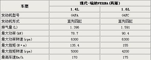 動力上,現代瑞納將繼續采用1.4L和1.6L兩款發動機,其中1.4L車型最大功率為78.7kw,峰值扭矩為135.4Nm,而1.6L發動機最大功率為90.4kw,峰值扭矩為155Nm,與這兩款發動機匹配的是5速手動或4速自動變速箱。