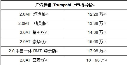 有媒體評(píng)論,廣汽傳祺Trumpchi上市發(fā)布會(huì)無(wú)論是地點(diǎn)的選擇、嘉賓的人數(shù)還是現(xiàn)場(chǎng)氣勢(shì)的營(yíng)造,都創(chuàng)下了業(yè)界的多個(gè)第一,堪稱國(guó)內(nèi)有史以來(lái)規(guī)模最宏大的新車上市儀式。而12.28萬(wàn)——18.98萬(wàn)元極具競(jìng)爭(zhēng)力的定價(jià),輔以完善的“加分服務(wù)”,使得廣汽傳祺Trumpchi一上市便成為中高級(jí)轎車陣營(yíng)2.0L級(jí)別最具性價(jià)比優(yōu)勢(shì)的車型。可以預(yù)見(jiàn)的是,依托廣汽集團(tuán)強(qiáng)大的品牌號(hào)召力和品質(zhì)口碑,廣汽傳祺Trumpchi必將一炮而紅,成為中高級(jí)轎車市場(chǎng)的全新標(biāo)桿。