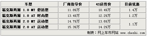 據4S店銷售人員介紹:目前福克斯兩廂1.8升兩款車型現車較充足,顏色齊全,手動擋車型目前優惠1.4萬元,優惠后僅為10.49萬元,1.8升自動版車型優惠1.2萬元,優惠后價格售12.29萬元。2.0升車型目前現車較少,顏色也不齊全,幾乎全部需要預訂,訂車需等待一個半月時間,目前優惠1.1萬元。由于2.0升車型銷量較少,所以廠家排產量也非常小,等待時間也較長。如果您對動力性要求十分高,推薦2.0升手動版車型,如果您作為代步使用,建議購買1.8升車型。