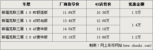 ?怂箲{借出色的外觀設計及極佳的操控性贏得了市場的認可,在銷量方面一直保持迅猛的勢頭。尤其新款福克斯的上市,一改內飾略顯粗糙的詬病,使得?怂垢呌谕昝。福克斯采用了沃爾沃S40底盤,將操控進行到底,這一優勢博得全世界的掌聲,名副其實成為了這個級別的標桿車型。據網上車市價格系統檢測顯示,目前三廂福克斯全系優惠1.5萬元,具體車型價格請看下表: