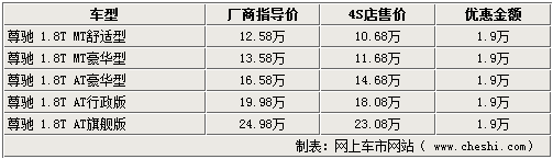 作為中華轎車的主要車型,駿捷及尊馳兩個(gè)系列車型銷售一直不錯(cuò),以其合理的價(jià)格定位吸引著許多消費(fèi)者的關(guān)注。網(wǎng)上車市網(wǎng)站了解到,近期隨著新尊馳以及FSV等車型的陸續(xù)到店,北京市場(chǎng)中在售的老款駿捷以及尊馳車型均可給出1.9萬(wàn)元的現(xiàn)金優(yōu)惠。詳情如下: