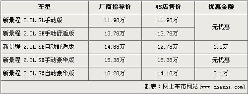 根據(jù)北京雪佛蘭4S店銷售人員介紹,由于2010款新景程將要上市,所以在款的景程已經(jīng)停產(chǎn),并且店內(nèi)已沒有手動擋現(xiàn)車,自動檔現(xiàn)車數(shù)量有限。經(jīng)1.9萬元優(yōu)惠后,2.0L自動舒適版的售價降到了12.78萬元,2.0L自動豪華版經(jīng)2.1萬元優(yōu)惠后售價也降到了14.18萬元。