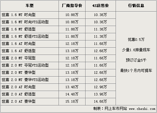 據(jù)東風雪鐵龍4S店銷售人員介紹,世嘉目前在售車型共有13款,全系優(yōu)惠5千元,現(xiàn)車只有部分1.6排量車型,2.0車型需要預訂,訂金5千元,最快1個月內就可以提車。另據(jù)了解,所有手動款車型都有普通版及VTS運動版可供選擇,其價格是完全相同的,可根據(jù)消費者自身要求購買。如消費者有意購買,到店詳談會有更優(yōu)惠的價格。北京地區(qū)各4S店由于訂單不同,各店銷售的現(xiàn)車顏色有所不同。