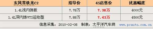 筆者近日走訪北京東風雪鐵龍4S店時獲悉,目前店內一批1.4L C2增配車型正進行促銷,除了增加(駕駛座椅高度可調、電動后視鏡、電動后窗)等配置外,現金優惠方面也最高達到了4500元,算下來累積優惠達到萬元左右。據了解4S銷售人員表示他們更看好1.4升車型在北京市場的銷售,原因主要是C2作為一款以運動、時尚和外觀為特點的小車型,吸引的更多是年輕人的目光,而這批獨有顏色的車型也是為了迎合了此類需求。