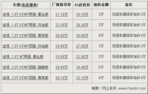 途觀最高加價5萬 提車時間無法確定