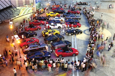 當晚7時許,23臺法拉利、瑪莎拉蒂轎車停在廣場上,四周拉起警戒線,近10名保安值守,禁止圍觀市民靠近觸摸。記者發現,共有5臺身價200萬元以上的瑪莎拉蒂,其余18輛法拉利跑車均價值300萬元以上,其中不乏號稱全球最快敞篷跑車的法拉利ScuderiaSpider16M,售價500余萬元。