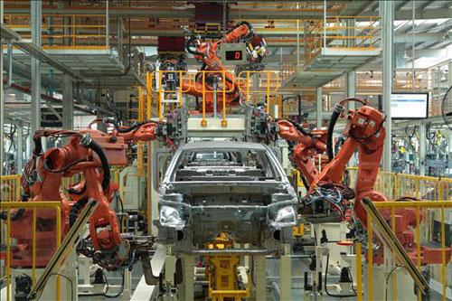 焊裝車間的機器人也讓我們眼前一亮。采用的設備主要有瑞典ABB公司生產的點焊機器人、涂膠機器人,日本大福生產的摩擦式車身儲備線、螺母自動輸送機等世界先進的設備。工作人員介紹,總焊線是柔性化生產線,一條線上能同時生產EC718/ EC718-RV兩個車型。焊裝工藝的關鍵質量控制點的焊接都是由ABB提供的焊接機器人來完成的,所有夾具都是日本富士公司生產的。在這個車間里也看到了全國精密度最高的三坐標測量儀,是從意大利進口的TORO測量機。它集開發、檢測、統計分析于一體,是設備、夾具、檢具、單品零件、分總成零件及白車身總成各檢測系統的連接紐帶,確保了生產制造過程的整個系統數據的統一、精準,大大提高了整車的質量檢測的精準度,投入使用如此高級的國際化檢測設備是一個汽車廠家高度重視產品質量的表現。