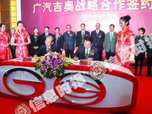 繼重組長豐、牽手菲亞特之后,廣汽集團再次出手,將浙江吉奧收至旗下,雙方昨日在杭州簽下戰略合作協議。根據協議,廣汽集團將以貨幣為主出資,吉奧汽車以其汽車產業相關資產出資,共同將原吉奧汽車相關資產整合成為一家廣汽集團與吉奧汽車股比為51:49的合資公司。簽約儀式之上,廣汽集團副董事長、總經理曾慶洪明確表示:“廣汽集團將保留吉奧現有經營管理層。”