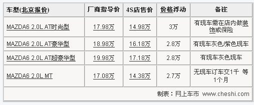 隨著新款馬自達(dá)6的即將上市銷售,目前銷售的老款車型也出現(xiàn)了較大幅度的松動(dòng)。據(jù)網(wǎng)上車市價(jià)格監(jiān)測(cè)系統(tǒng)顯示:目前購買馬自達(dá)6的消費(fèi)者最高可享受到最高3萬元的促銷優(yōu)惠,最低售價(jià)已經(jīng)跌破了15萬元關(guān)口,對(duì)于一款中級(jí)車而言,這樣的價(jià)格已經(jīng)貼近A級(jí)車的身價(jià)了。