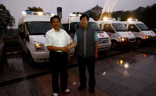 江鈴緊急趕制的5輛福特全順救護車一到達災(zāi)區(qū),立即被派往受災(zāi)前線救護受災(zāi)民眾