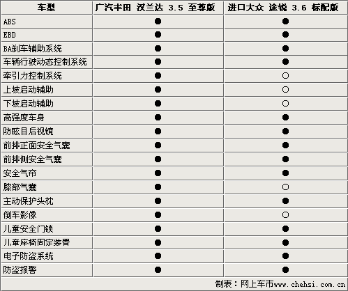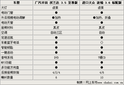 2009年5月25日,廣汽豐田的首款SUV車型漢蘭達正式下線,并宣布其正式上市。國產漢蘭達車型分為2.7和3.5兩個排量,共計10款車型,售價為24.88萬元-42.98萬元。漢蘭達在外型設計上突破了傳統的SUV設計風格的束縛,注重內在的力量而非粗放的外表,在堅韌的軀殼之上更追求智能化,同時它也是豐田在中國地區投產的首款中級城市SUV車型。那么它的市場競爭力究竟如何?和市場上其它中級城市SUV車型相比究竟有那些優勢呢?為了能讓您可以更加清楚地了解這款新車,我們選擇了市場銷售的進口大眾途銳與其來做一個全方位的對比。這兩款車型無論從車身尺寸,還是動力系統均屬于一個級別的SUV車型。