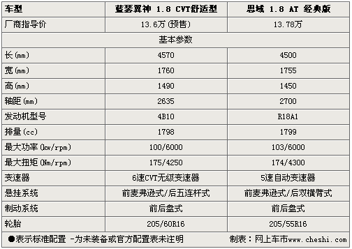 這次選擇的兩個(gè)車款是價(jià)格比較接近的,僅差1800元且都是自動(dòng)擋,首先在基本參數(shù)上,藍(lán)瑟翼神要比思域車身略長(zhǎng)一些,但在軸距上思域要略有優(yōu)勢(shì),這在內(nèi)部空間上將有所體現(xiàn)。在動(dòng)力上,藍(lán)瑟翼神與思域的1.8L發(fā)動(dòng)機(jī)在參數(shù)上比較接近,但在變速器上藍(lán)瑟翼神裝備的是6速CVT變速器更先進(jìn)一些。在懸掛系統(tǒng)方面,藍(lán)瑟翼神的后五連桿式也要比思域的雙橫臂式乘坐舒適性更好一些,但維護(hù)成本要高一些。