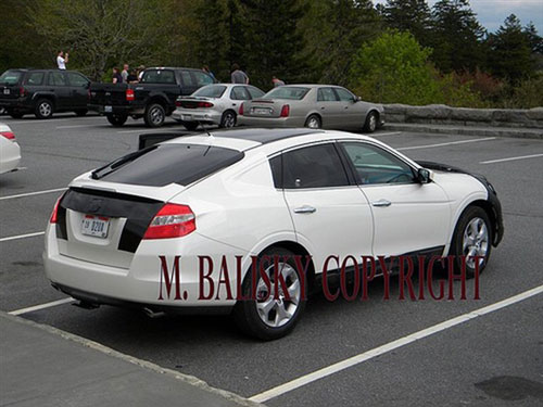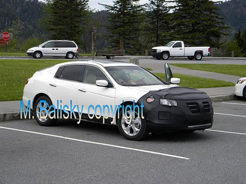 從諜照上看,雅閣Crosstour的車頂線條與在本屆紐約車展上亮相的謳歌ZDX概念車非常相似,車頂擺脫了傳統的“兩柱式”設計,A柱與C柱被視覺沖擊感極重的一體式“溜背”車頂設計所取代。雖然此設計創新力極佳,但是后尾急降的弧度不知道會不會另后排乘客感覺到頭部空間不夠。