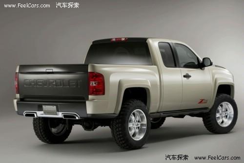 全新的雪佛蘭Silverado ZR2概念車其車身設計十分大膽,并大量采用了碳纖維材質,包括前翼子板,發動機蓋等部分,而且整車的很多部件都取自即將量產的皮卡車型。新車外觀給人的總體感覺是,大氣美觀。
