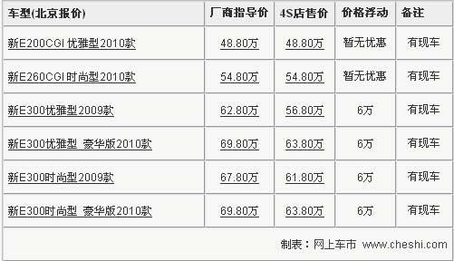 奔馳新E級自上市以來便受到了極大的關注,目前國內市場上銷售的車型為進口版車型,國產版加長奔馳新E級也在本屆北京國際車展上展出,再次將中大級豪華車奔馳新E級的推成焦點。據悉在國產奔馳新E級上市在即的前期,進口版奔馳新E級出現了全系最高的6萬元優惠,具體詳情請看下表: