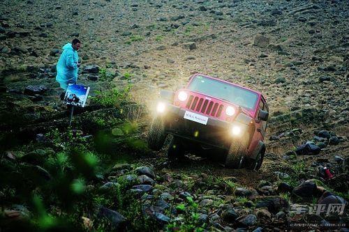 而牧馬人撒哈拉2.72:1 的越野傳動比更 是被羅賓漢的4.0:1 視如兒戲,如此之大的齒 比同樣是越野車之最,并意味著相同的發動 機扭矩在羅賓漢上會被放大四倍,因此它能 在怠速狀態下就“悠然上南山”。即使面對極 端越野路況,也能讓駕駛者信心膨脹到目中 無人、眼中無物,似乎沒有什么陡坡或障礙能 阻止這輛車前進的腳步。