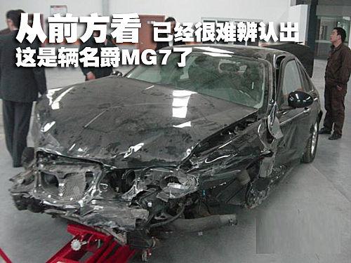 當我們看見這輛被拖回來的名爵MG7時,因為車輛受損比較嚴重,如果不看車尾從車頭方向看上去,已經很難辨認出這到底是一輛什么車了。