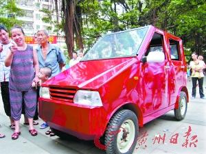 “做這玩意兒主要出于愛好!绷糁鴾\平頭的湖北黃石人彭易然坦然而得意地告訴記者,7年來一直在東莞長安霄邊從事送水、送氣的他,很想擁有一輛自己的轎車,但是高昂的車價使得他望洋興嘆。于是在去年9月,僅有小學學歷的他突發奇想“自己做一輛”。