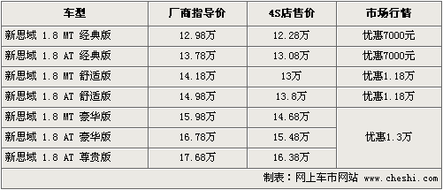 思域一直是東風(fēng)本田的主打轎車,憑借其時(shí)尚的外觀設(shè)計(jì)和精細(xì)的內(nèi)飾做工以及良好的燃油性,已經(jīng)贏得了市場的普遍認(rèn)可。根據(jù)網(wǎng)上車市價(jià)格監(jiān)測系統(tǒng)顯示,目前思域的優(yōu)惠幅度較上個(gè)月有所增大,最高可優(yōu)惠現(xiàn)金1.3萬元,現(xiàn)車較為齊全。具體車型價(jià)格行情如下: