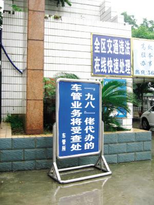 10月21日,南寧車管所江北工作站,警示牌提醒車主按正規手續辦理業務。