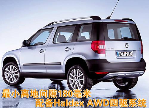 斯柯達(dá)Yeti車(chē)型內(nèi)部非常的寬敞,同時(shí)可以容納較多的行李,使用VarioFlex彈性后座系統(tǒng),行李箱空間可以達(dá)到1760升。斯柯達(dá)Yeti擁有180毫米的最小離地距離,標(biāo)準(zhǔn)配置為17英寸的輪轂,并且采用了來(lái)自瑞典Haldex公司的第四代Haldex AWD四驅(qū)系統(tǒng)。